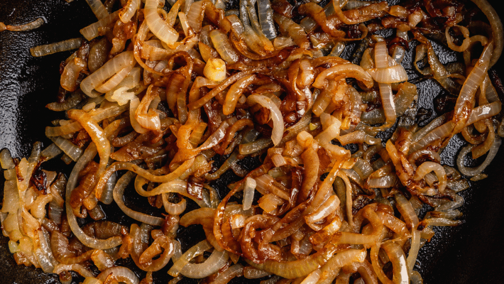 לפני שמדברים על הבשר, צריך לדבר על הבצל. קרמול אמיתי הוא לא רק שלב במתכון – זו אומנות של סבלנות. בצל זה יצור עדין, וכל מי שממהר איתו מפספס את הקסם. תבחרו בצל גדול, לבן או סגול, כזה שכבר יש לו עומק. תקלפו, תפרסו לרצועות דקות – לא לקוביות. כשאתם שמים אותו במחבת עם שמן זית, אל תתפתו לערבב כל הזמן. תנו לו לעבוד. אש בינונית-נמוכה, בלי לחץ. בהתחלה הוא יריח חזק, כמעט צורב באף – תנו לו. זה שלב הניקוי שלו. אחרי כמה דקות הריח יתחיל להשתנות, המתיקות תצא, והצבע יתחיל להזהיב. זה הרגע שבו מתחילים להבין מה זה “קרמול”. אחרי רבע שעה, כשהוא כבר עמוק וזהוב, תוסיפו כפית סילאן או מעט סוכר חום. לא כדי להמתיק, אלא כדי להעמיק את הצבע. עכשיו הבצל כבר לא תוספת – הוא רוטב בפני עצמו. הוא נהיה דביק, ריחני, ובמטבח פתאום יש ריח של שבת.